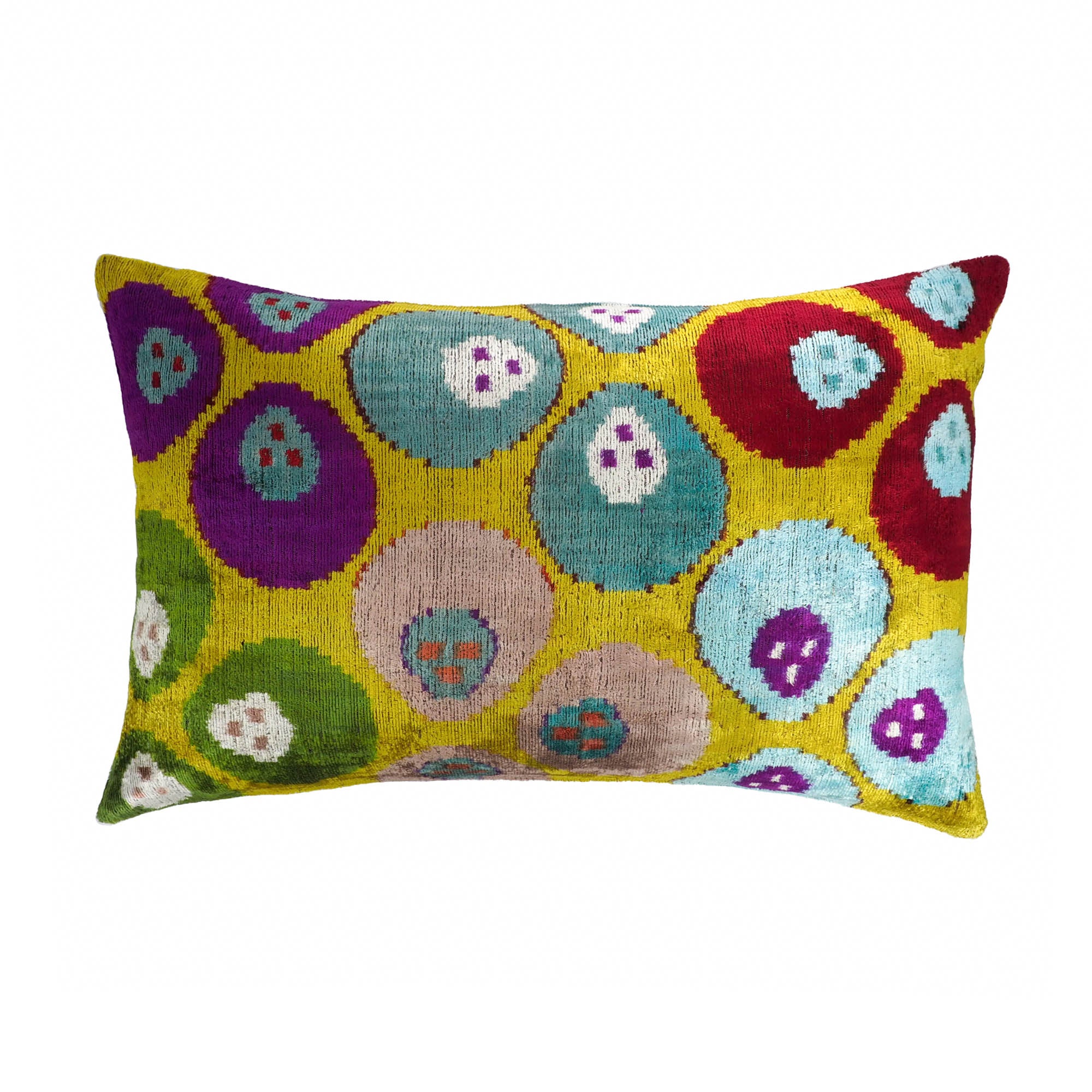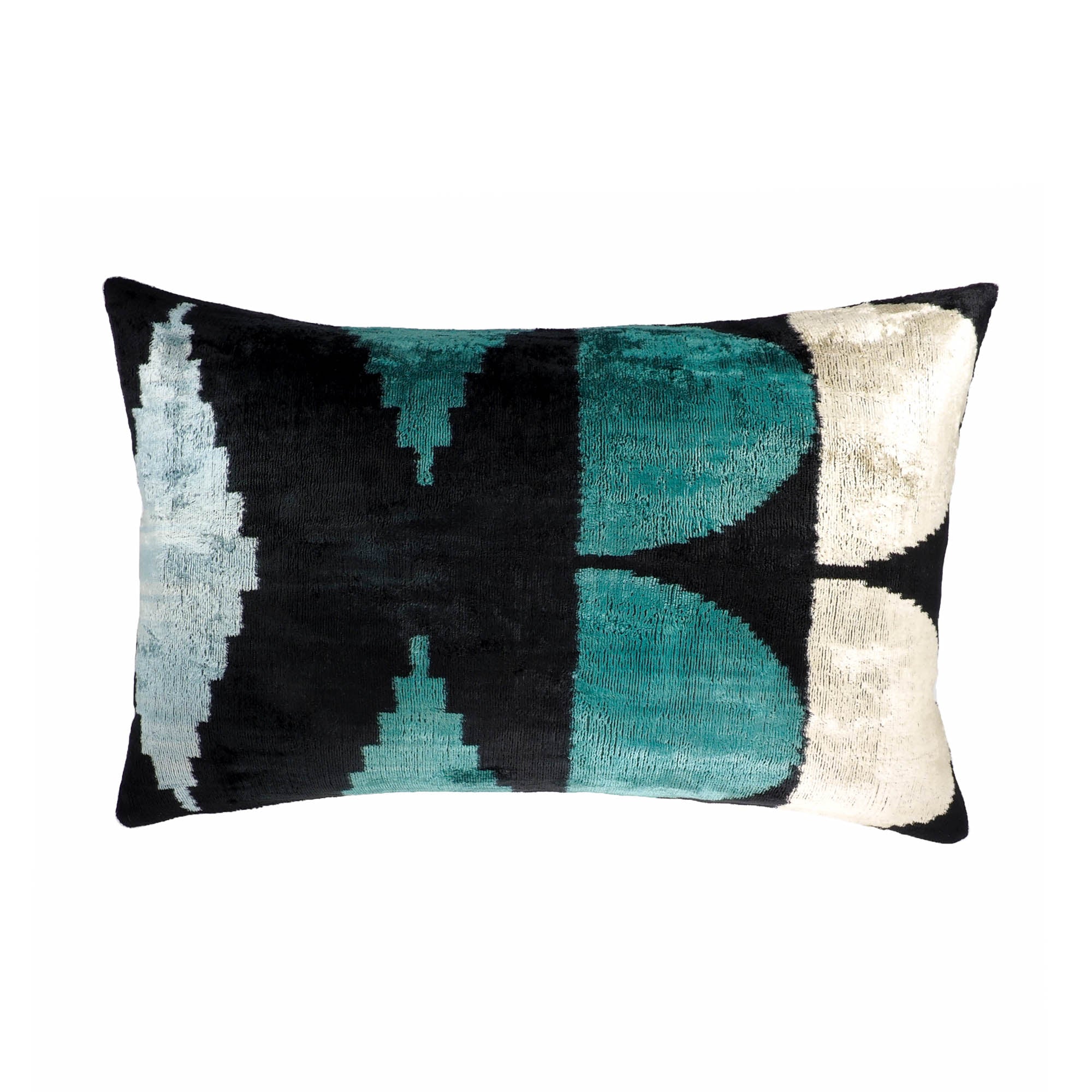 Blossoms Silk Velvet Ikat Throw Pillow, 16" X 24" Case Only