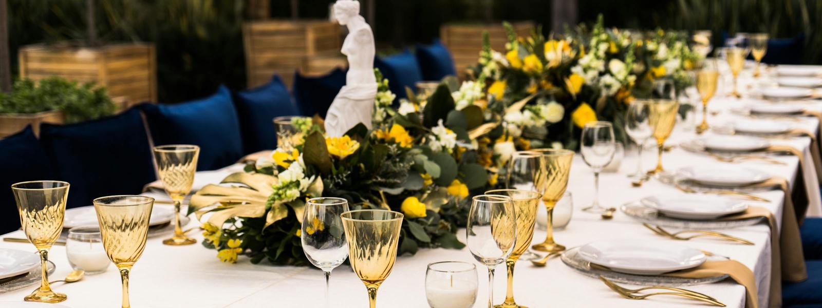 Our Dinner Parties collection features luxurious fabrics, handcrafted details, and refined accessories to create an unforgettable setting for your guests.